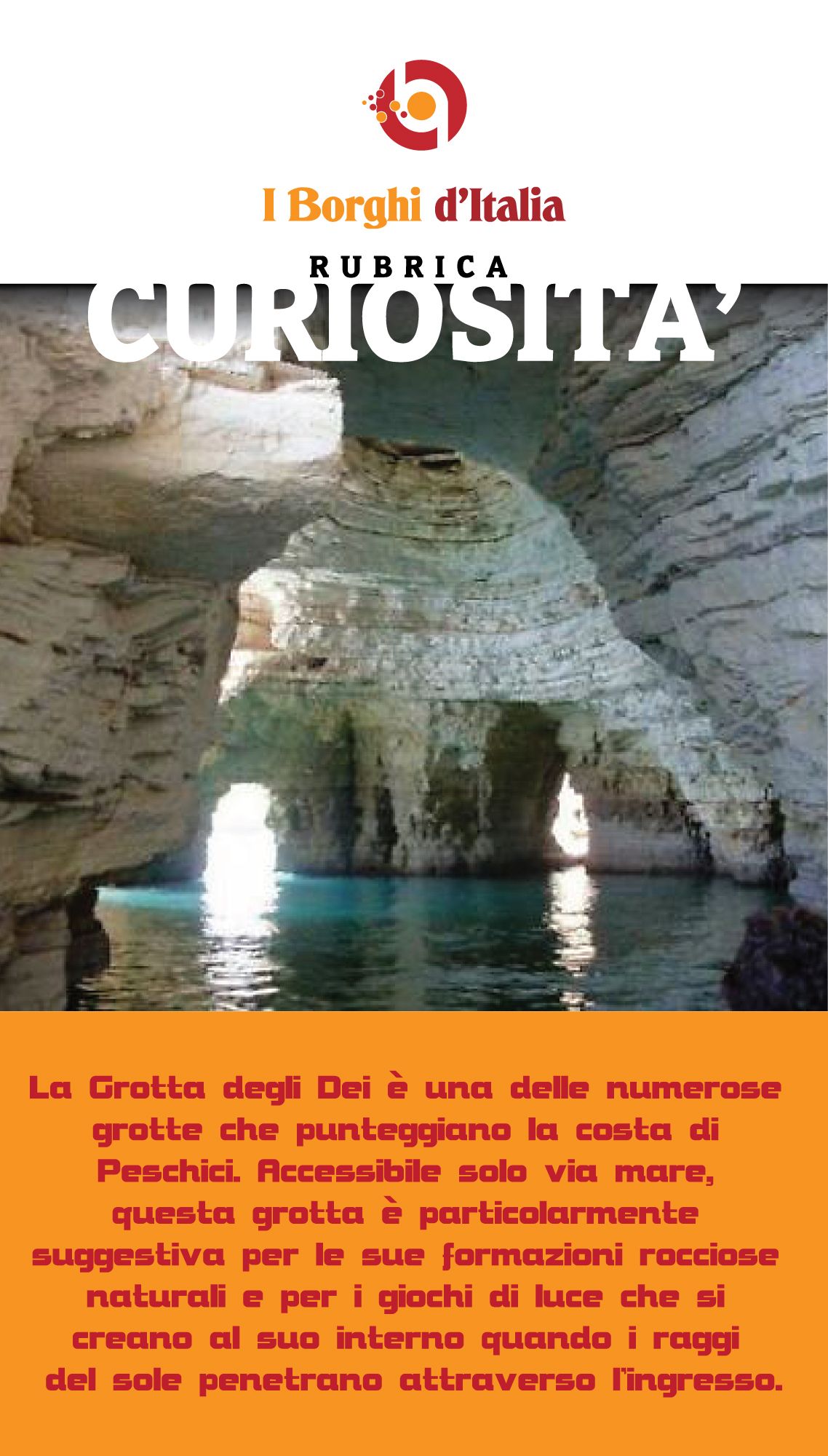 Peschici, affacciata sul mare Adriatico e situata nel Parco Nazionale del Gargano, è famosa non solo per le sue splendide spiagge e il caratteristico centro storico, ma anche per le sue affascinanti grotte marine. Una delle più interessanti e meno conosciute è la “Grotta degli Dei”.