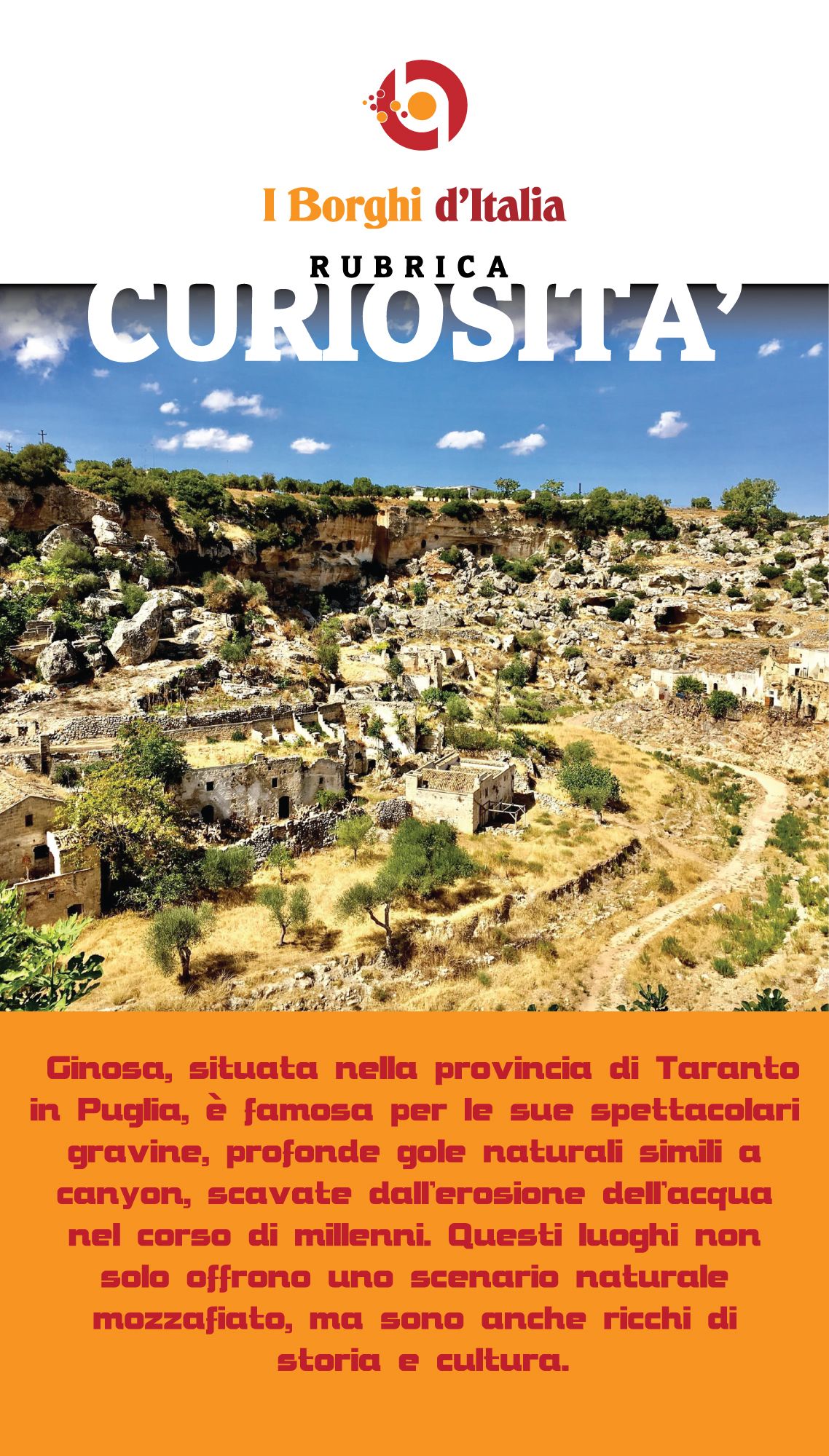 Ginosa, situata nella provincia di Taranto in Puglia, è famosa per le sue spettacolari gravine, profonde gole naturali simili a canyon, scavate dall’erosione dell’acqua nel corso di millenni. Questi luoghi non solo offrono uno scenario naturale mozzafiato, ma sono anche ricchi di storia e cultura.