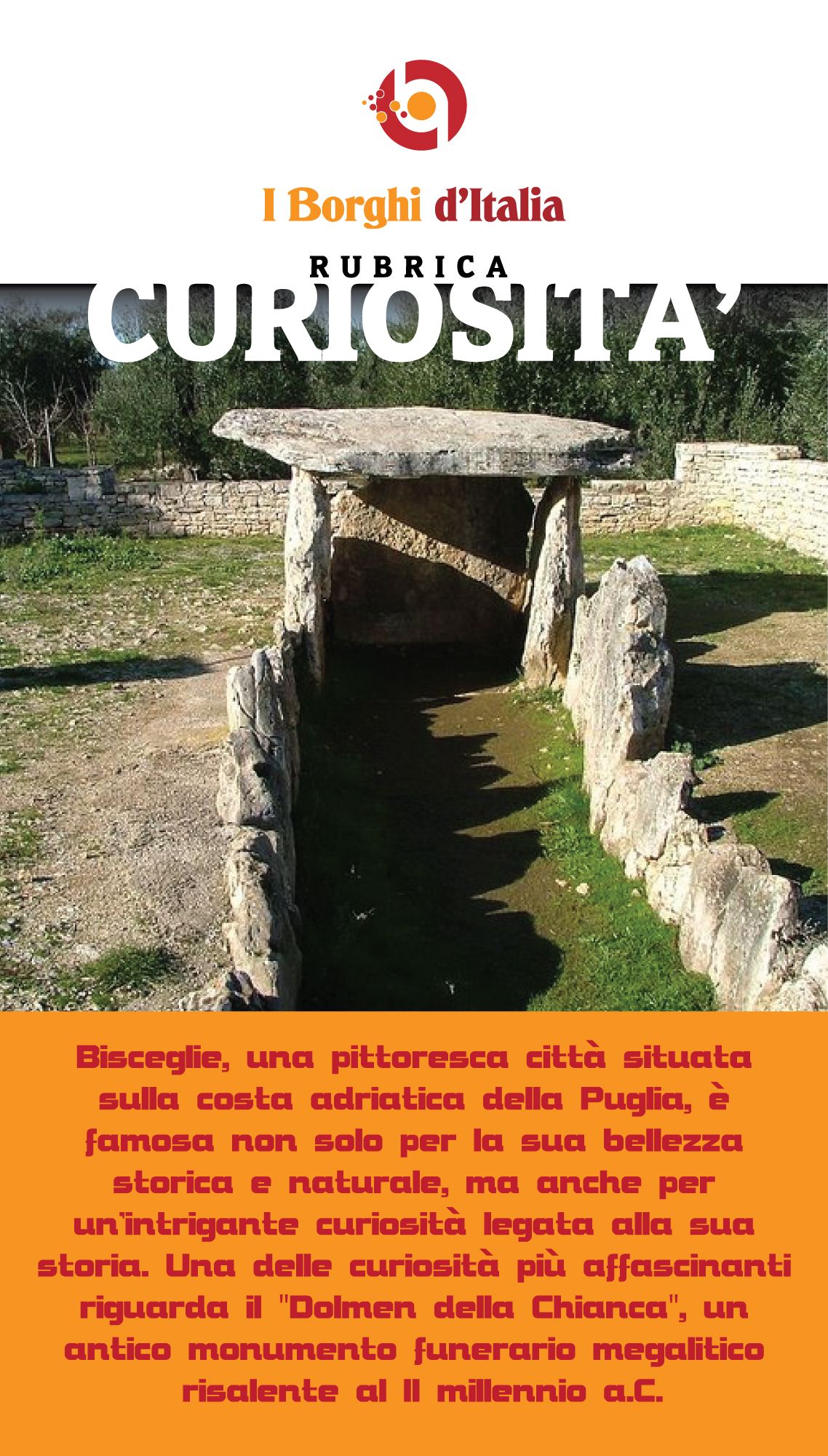 Bisceglie, una pittoresca città situata sulla costa adriatica della Puglia, è famosa non solo per la sua bellezza storica e naturale, ma anche per un’intrigante curiosità legata alla sua storia. Una delle curiosità più affascinanti riguarda il “Dolmen della Chianca”, un antico monumento funerario megalitico risalente al II millennio a.C.