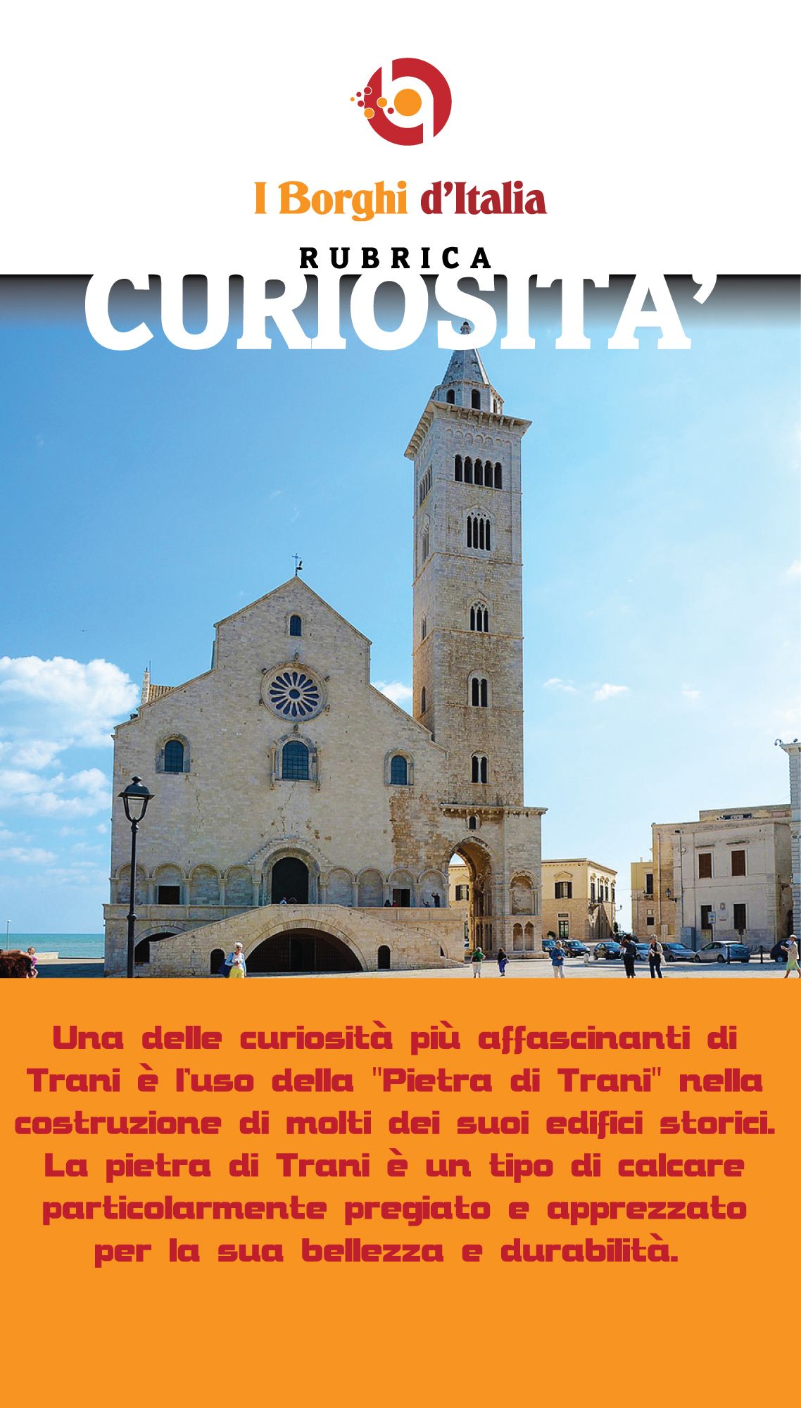 Una delle curiosità più affascinanti di Trani è l’uso della “Pietra di Trani” nella costruzione di molti dei suoi edifici storici. La pietra di Trani è un tipo di calcare particolarmente pregiato e apprezzato per la sua bellezza e durabilità. Questa pietra ha un caratteristico colore chiaro, che varia dal bianco al beige, conferendo agli edifici un aspetto luminoso e distintivo.