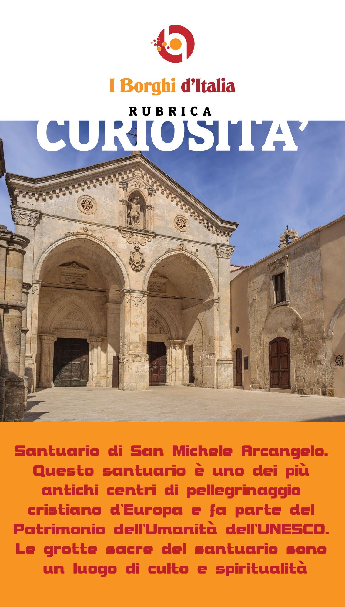 Curiosità: Nella provincia di Foggia si trova il suggestivo borgo di Monte Sant’Angelo, famoso per il suo Santuario di San Michele Arcangelo. Questo santuario è uno dei più antichi centri di pellegrinaggio cristiano d’Europa e fa parte del Patrimonio dell’Umanità dell’UNESCO. Le grotte sacre del santuario sono un luogo di culto e spiritualità, attrattiva per migliaia di fedeli e turisti ogni anno, che vi si recano per ammirare la sua architettura sacra e respirare l’atmosfera mistica del luogo.