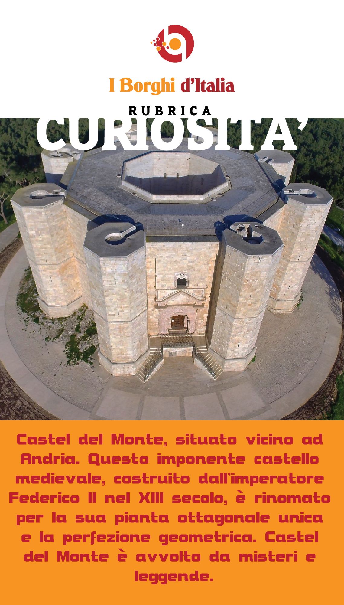 Castel del Monte è molto più di un semplice castello: è un viaggio nel passato, un incontro con l’arte e la scienza del medioevo e un luogo dove la storia e il mistero si fondono in modo unico. Non perdete l’occasione di visitare questo gioiello architettonico e di scoprire tutte le sue affascinanti storie.