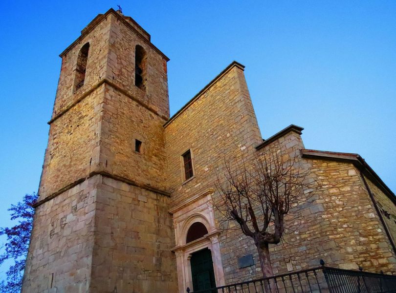 La chiesa sorge nel punto più alto del centro storico, in una zona abitata fin dall’antichità. La tradizione locale attribuisce la costruzione di questo edificio alla famiglia Borrello, ma non sono mai stati rinvenuti documenti che attestano ciò. Questa chiesa ha subito due devastanti incendi, il primo nel 1390 ed il secondo la notte di Natale del 1610. In quest’ultima occasione l’originale chiesa benedettina a tre navate è stata completamente distrutta, ed è stato costruito al suo posto un edificio a navata unica con un unico ingresso.