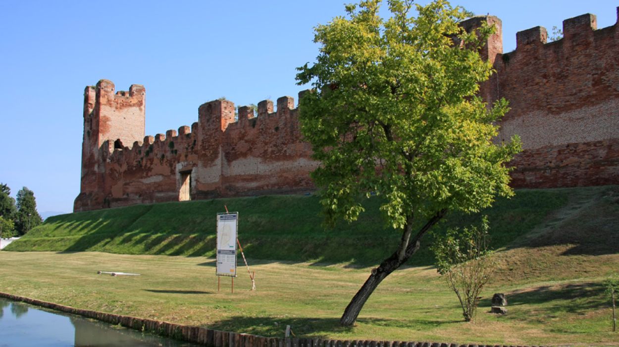Viene quindi costruito un castello a pianta quadrata, contraddistinto da un caratteristico colore rosso, con quattro torri di difesa poste agli angoli e un torrione merlato. Per favorire la popolazione di questo nuovo centro, Treviso decise di esentare dal pagamento delle imposte i nuovi abitanti.