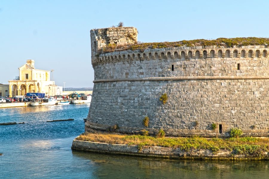 Il castello Angioino di Gallipoli è un’isola sull’isola, circondato per gran parte dal mare. Lo si può ammirare già dal ponte che collega la città nuova alla città vecchia.