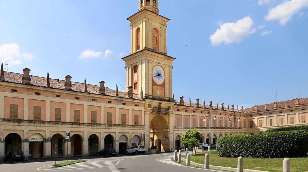- La Torre Civica: Imponente e visibile da lontano, la Torre dell’Orologio è l’elemento che rompe l’uniformità del portico con la sua mole massiccia e l’ampio arco d’accesso, fungendo da cerniera tra la piazza e il tessuto urbano circostante.