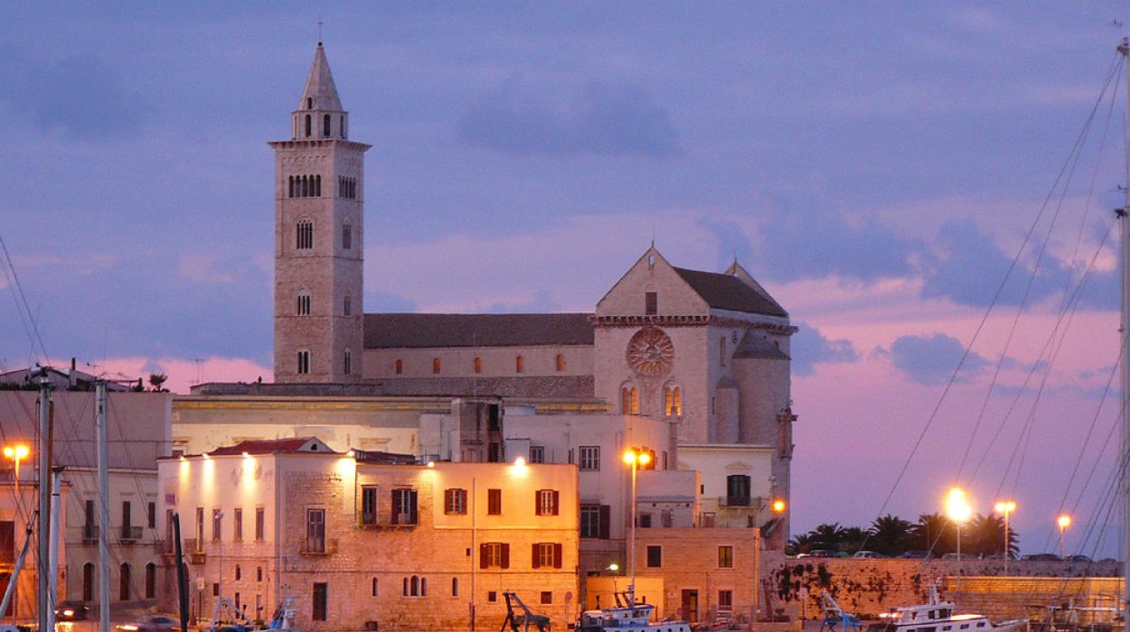 Non una cattedrale qualsiasi, ma La Cattedrale. È d’obbligo la lettera maiuscola quando si parla della più bella cattedrale di Puglia, esempio più alto ed eccelso dello stile romanico pugliese. Isolata dal resto della città, magnificente nel suo protendersi verso l’alto, con un candore dato dall’uso della pietra calcarea locale, la pietra di Trani. Il mare arriva a lambire le sue coste, come un continuo promemoria che le ricorda che parte della sua bellezza e della sua grandezza è dovuto proprio a quella distesa d’acqua. Dal mare arrivò Nicola, pellegrino greco che girava le coste del Mediterraneo per portare la parola di Cristo, ma una volta sbarcato il ragazzo morì, probabilmente per la fame patita. Venne canonizzato e San Nicola il Pellegrino è diventato da allora la vera fortuna di questo borgo, in un tempo in cui le reliquie erano merce preziosa, in grado di determinare l’importanza e l’onore di una città.