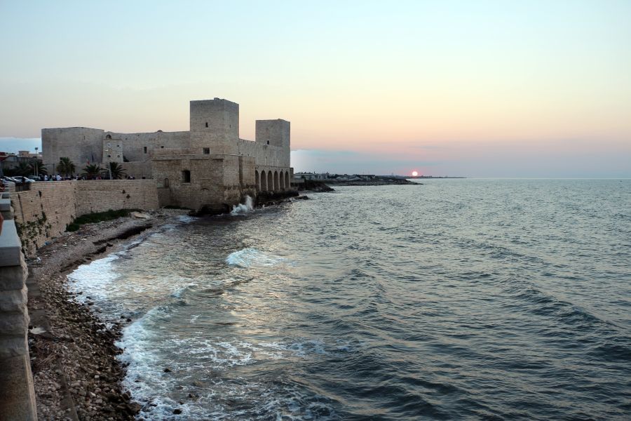 Il Castello Svevo di Trani rappresentava, fin dalla posa della prima pietra, uno snodo cruciale nel piano di difesa ideato da Federico II di Svevia che lo ha commissionato nella prima metà del Milleduecento. È stato costruito in una posizione isolata, su un banco di roccia ribassato rispetto al resto della città. Doveva essere un punto strategico rilevante, perché sempre qui vi era una torre di vedetta risalente al X – XI secolo, successivamente rasa al suolo.