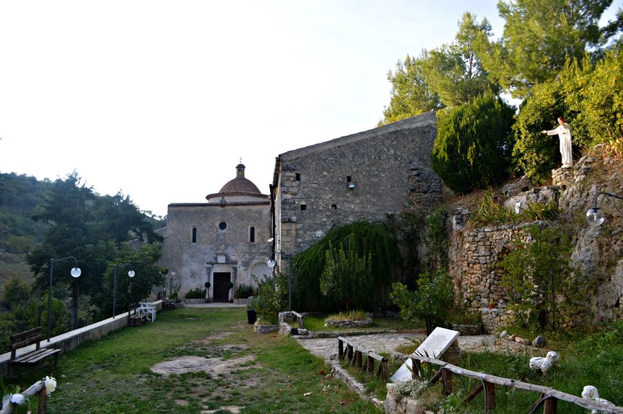 La facciata esterna è arricchita solo da una torre campanaria d’impianto quadrato e da una cupola a costoni, colori Rosso Terra di Siena.