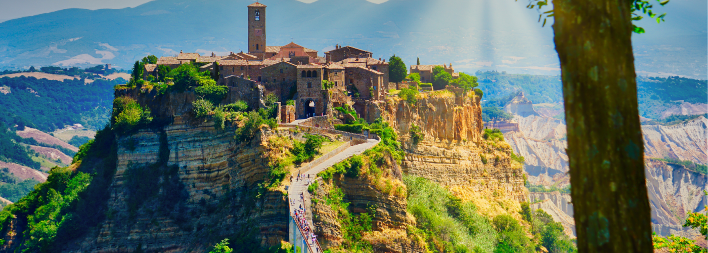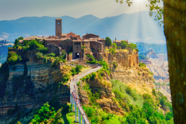 Das Leben im Schatten des Kolosseums ist nicht einfach, doch die Region Latium ist ein unermüdlicher Hüter märchenhafter Schönheit. Ihre Dörfer laden zum Genießen ein, mit gemächlichem Tempo und neugieriger Seele. Kleine Geisterstädte sind übersät, stimmungsvolle und magische Orte wie Bagnoregio, hoch oben auf einem bröckelnden Felsvorsprung, und Antuni, das von seinem Hügel aus wie ein blumengeschmückter Balkon auf ein Wasserpanorama blickt: den Turanosee. Diese Städte erzählen Geschichten, die verblassen, in der Zeit verloren gehen. In den engen Gassen, auf den Plätzen und in den Palästen der Stadt ist der römische Geist noch immer spürbar, verwoben mit antiken Legenden, wie der von Tuscania, einer kleinen Stadt, deren Gründung mit Ascanius, dem Sohn des Aeneas, in Verbindung gebracht wird. Auch die Tempel und Patriziervillen von Tivoli und der römische Hafen von Civitavecchia, noch immer ein Knotenpunkt für Menschen, die in die Hauptstadt, die unbestrittene Königin dieses Landes, reisen, sind einen Besuch wert. Alte Traditionen prägen Latium. Manche sind Zeichen einer Wiedergeburt, wie das Blumenkohlfest in Tuscania, das untrennbar mit dem Erdbeben von 1971 verbunden ist. Andere sind von Spiritualität und Mystik durchdrungen, wie die 52 Zentner schwere Rosensäule, die jedes Jahr in Viterbo auf den Schultern von hundert Männern getragen wird. Dieses Land ist ein grundlegender Teil der Weltgeschichte, mit Geschichten und Legenden, die mit alter Folklore verwoben sind, eingebettet in die Hügel, die allmählich nach Circeo abfallen, wo das Land endet und das Mittelmeer