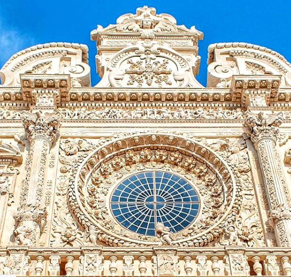 La facciata della Basilica di Santa Croce è uno degli esempi più straordinari del barocco leccese. È divisa in tre parti principali: