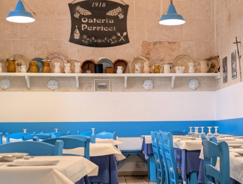 Osteria Perricci: Dal 1910, il Sapore Autentico di Monopoli Nel cuore pulsante del centro storico di Monopoli, l’Osteria Perricci rappresenta un punto di riferimento imprescindibile per chiunque cerchi la vera cucina marinara pugliese. Entrare nella nostra osteria significa immergersi in un’atmosfera conviviale e genuina, dove la tradizione viene servita in tavola ogni giorno. La nostra proposta è un inno al pesce freschissimo: dai famosi crudi di mare, orgoglio della nostra costa, ai primi piatti che profumano di scoglio. Ogni ricetta è cucinata secondo le usanze di una volta, garantendo porzioni generose e quel sapore di “casa” che ci contraddistingue da generazioni. Osteria Perricci: dove il mare incontra la tradizione.