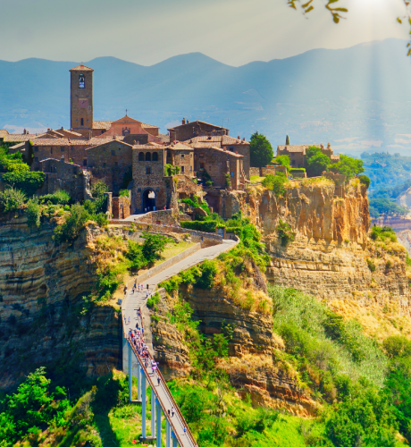 I borghi sono tutti da gustare, con passi lenti e animo curioso. Piccole città fantasma punteggiano questa terra, sono luoghi suggestivi e magici, come Bagnoregio, arroccata su uno sperone roccioso che si sta disgregando, e Antuni che dall’alto del suo colle si affaccia come un balcone fiorito su un panorama d’acqua: il lago di Turano.