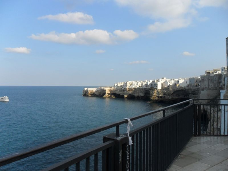 Da Via Narciso seguendo un piccolo ponte si giunge alla Grotta Palazzese, la più conosciuta tra le grotte di Polignano a Mare, grazie anche al piccolo ristorantino in cui si può cenare sospesi sul mare.
