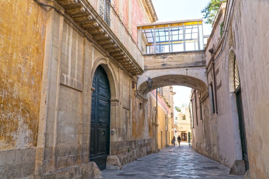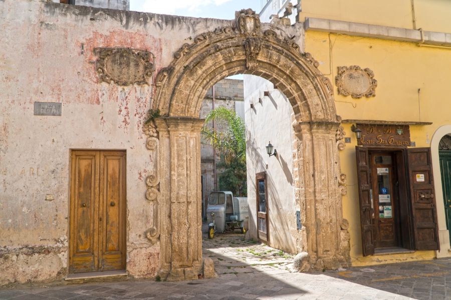 Via Taverna è la strada che unisce Santa Maria di Leuca e Taranto, il suo nome deriva dalla villa che si trova su questa strada, che è anche la più antica dell’intero complesso architettonico. Questa dimora è stata costruita su un’antica struttura del ‘Quattrocento che in passato era adibita ad ostello e punto di riposo per cavalli, come testimoniano i pali rimasti ancora ben visibili nel giardino. Nel 1780 è stata edificata la villa, dai tratti sobri, ingentilita semplicemente da un portale e da balconi che rievocano il gusto barocco, in una cornice di mura di cinta. Un’altra dimora storica molto bella è la Cinata del Monsignore, edificata come residenza estiva del vescovo e voluta dal Vescovo Petruccelli nel 1755. I lavori di costruzione sono terminati nel 1838, con l’allora vescovo Lettieri, per questo la villa è dominata da due gusti architettonici che si possono ben distinguere: il barocco e il neoclassico.